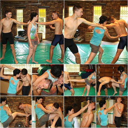 We showcase : arm bars, nelsons, super nelsons, ab stretches, backbreakers, referee breakdowns, bearhugs, boston crabs, bully pins, butterfly pins, reverse fig4 head scissors, camel clutches, cradles, fig4 body scissors, grapevines, knock outs, limp play, tight waist control, romeros, over-the-shoulder backbreakers, reverse t-lifts, body scissors, head scissors, sleepers, referee positions, side holds, t-lifts, torture racks, spladles, stacks, schoolboy pins, full weight sitting, foot fighting, smothers, arm locks, riding techniques, victory poses, gut punching, kicks, head locks, raised head locks, tight waist holds, bridging, pink panther pins, in hook pins, upper quarter body pins, banana splits, hammer locks and lots-lots more!
